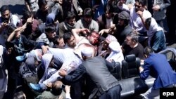 اما این مظاهره پس از آن به خشونت گرائید که به گفته مقامهای امنیتی افغانستان شماری از افراد مسلح فرصت طلب به جمع معترضان پیوستند.